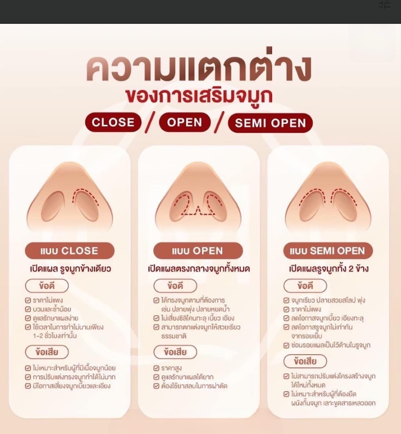 - เหมาะกับผู้ที่อยากปรับทรงมากกว่า Closed เช่น ปรับปลายจมูกให้ชัด หรือรองรับเคสแก้บางประเภท แต่ไม่ถึงขั้นซับซ้อนมากเหมือน Open